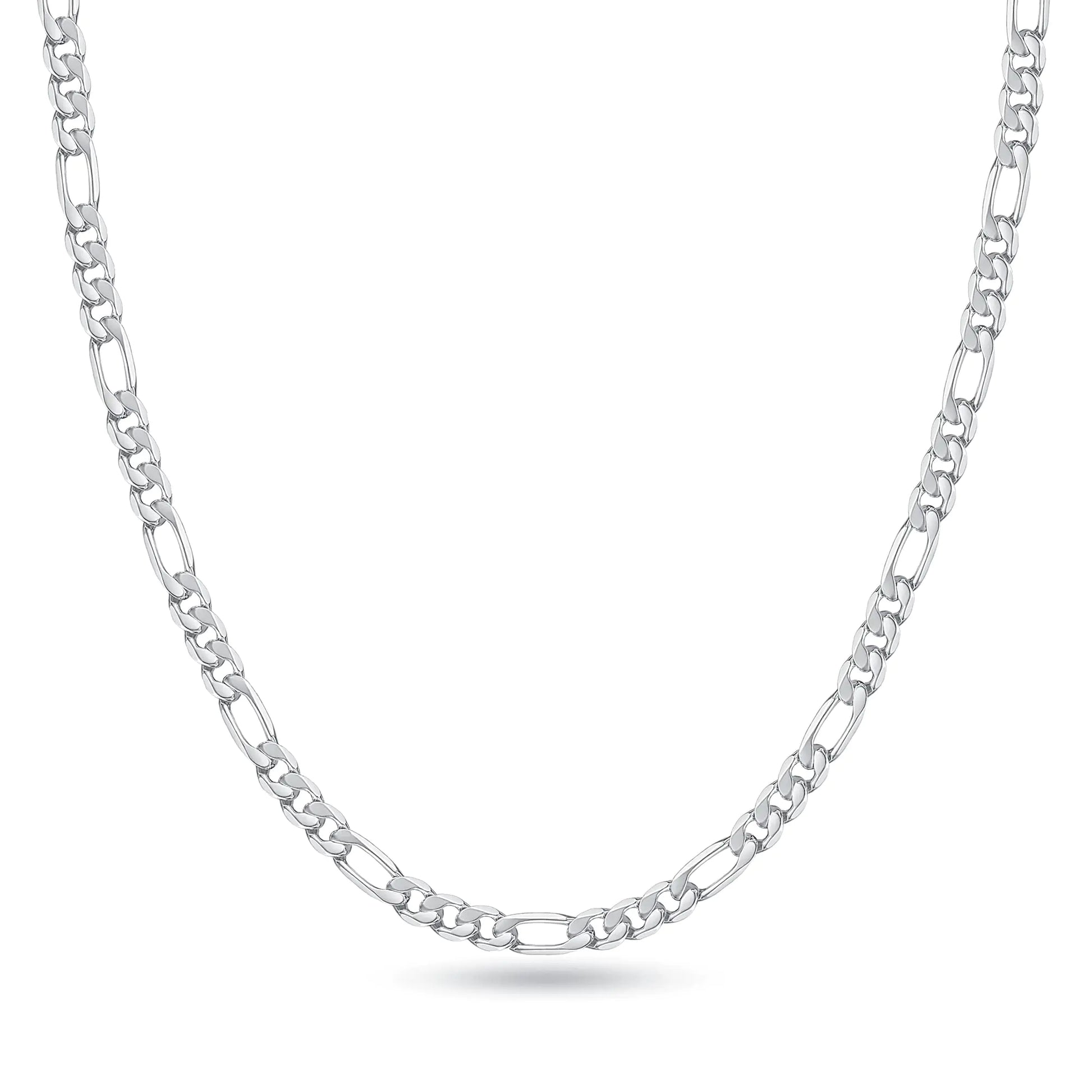 [MODERN CLASSIC SILVER CHAIN FOR MEN: This diamond cutting elegant 925 sterling silver figaro chain shines with perfect luster giving a simple and unique shape more fashion atmosphere.This chain is carefully made by the master and can be used alone or with pendants to show personality and create a fashionable appearance. You can also choose to match other different styles of chains and you can also be a representative of the trend. MENS SILVER CHAIN NECKLACE: Sterling silver clasp figaro chain is made of safe material you can completely ignore the allergic problem which is so friendly to people with sensitive skin. 3mm silver figaro chain for men strong and durable perfect for everyday wear. COMFORTABLE MENS SILVER CHAIN FOR MEN: The surface of the silver figaro chain adopts multi-layer electroplating process which makes it have lasting color retention properties. At the same time it makes the chain surface smooth and shiny this will better protect your neck. PERFECT GIFTS for MEN: Silver chain for men is packed in a beautiful gift box ready to give gifts for any birthday Christmas New Year and any other festivals or special occasions. Whether it is elegant fashionable modern style or nostalgic and retro style we can provide you with high quality. AFTER SALE SERVICE: If there is any quality problem with the silver figaro chain necklace please contact us we will reply you at the first time. Enjoy your shopping!]
